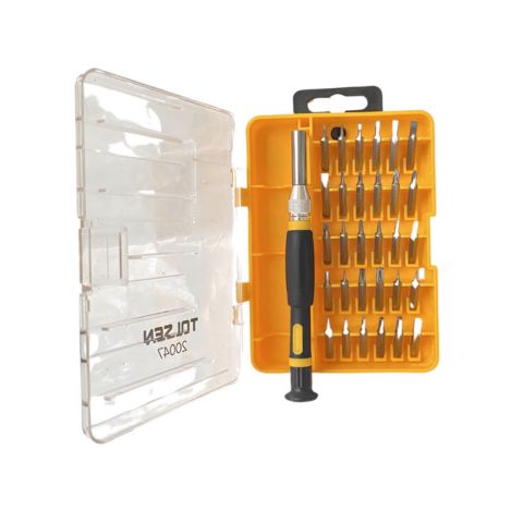 - Bộ tua vít đa năng 32 đầu Tolsen 20047 là sản phẩm chất lượng, được sử dụng nhiều trong việc sữa chữa các chi tiết ốc vít nhỏ như: đồng hồ, bo mạch, motor đồ mini…là sản phẩm chính hãng, bạn sẽ yên tâm trong quá trình sử dụng.