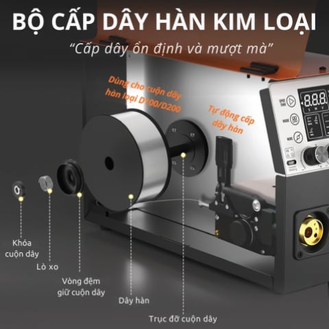 | Chức năng | MIG có khí, MIG không khí, MMA, Lift TIG |