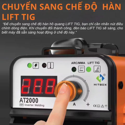 Tính năng Lift TIG tích hợp giúp tăng giá trị sử dụng của Máy hàn que Hitbox AT2000, đặc biệt với người dùng muốn thử sức với hàn TIG mà không cần đầu tư thêm máy riêng.