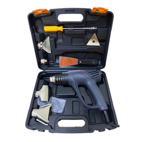 | Phụ kiện | 1 thùng nhựa | 1 máy thổi nhiệt | 1 đầu khò dẹp | 1 đầu khò tròn | 1 đầu khò 1/2 | 1 sủi cán bọc nhựa | 1 cán cạo | 1 lưỡi cạo ron tam giác |