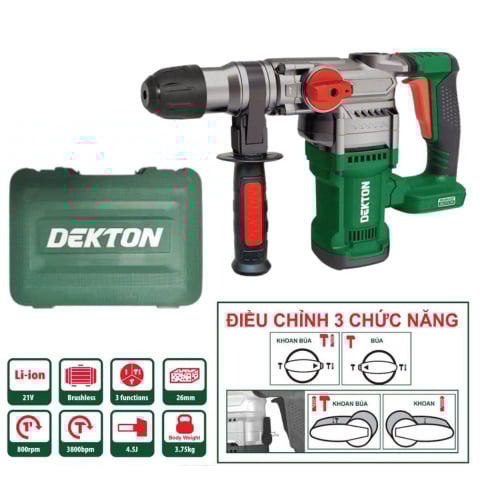 Máy khoan đục Dekton M21-RH2603AVT là sự lựa chọn hàng đầu cho những người thợ xây dựng, kỹ sư cơ khí, và cả những người đam mê DIY. Với thiết kế hiện đại, tích hợp động cơ không chổi than và nhiều tính năng tiên tiến, sản phẩm này đáp ứng được hầu hết các yêu cầu khắt khe trong công việc khoan, đục và khoan búa.