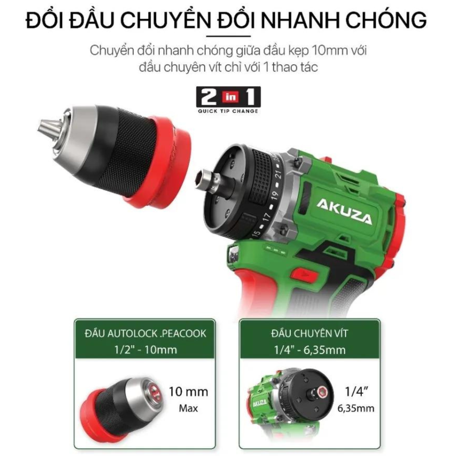 Máy khoan pin Akuza K6 là một trong những dòng sản phẩm khoan vặn vít chuyên dụng, được thiết kế nhỏ gọn nhưng vẫn đảm bảo hiệu suất mạnh mẽ. Với chức năng 2IN1 (khoan thép & khoan gỗ), động cơ không chổi than và nhiều tính năng vượt trội, đây chắc chắn là sự lựa chọn lý tưởng cho các thợ chuyên nghiệp cũng như người dùng gia đình.